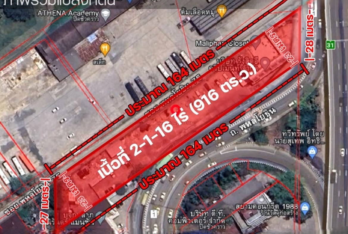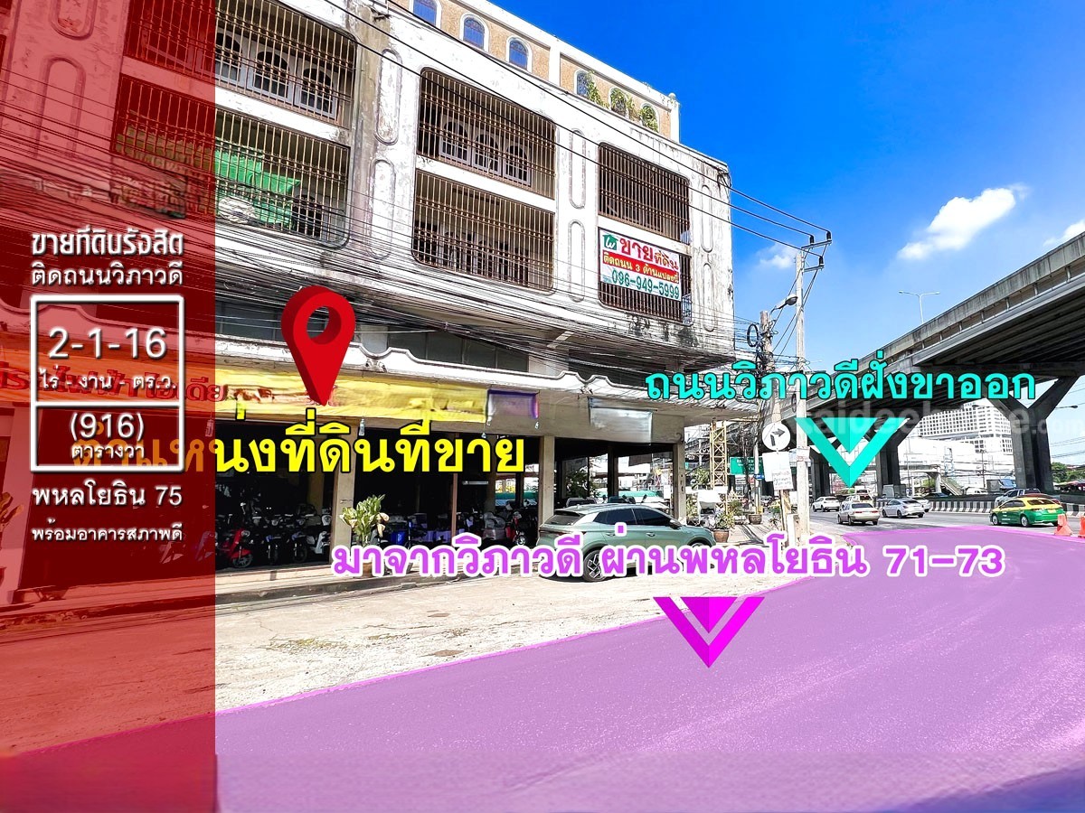 ขายที่ดินรังสิต พหลโยธิน 75 ติดถนนวิภาวดี เนื้อที่ 2-1-16 ไร่ (916 ตารางวา) ผังสีแดง ติดถนน 3 ด้าน ด้านหน้าและด้านข้างติดถนนวิภาวดี ซ้ายติดพหลโยธิน75 พร้อมอาคาร