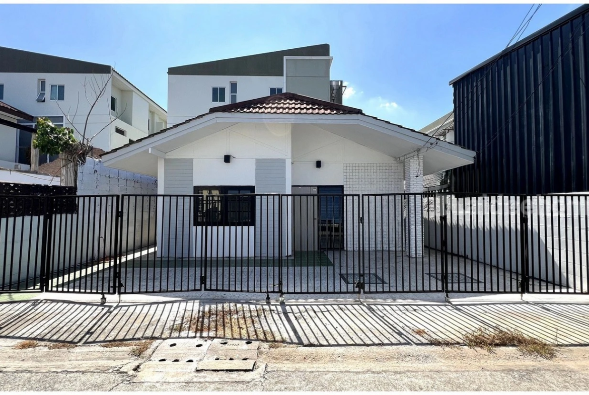 ขายบ้านรามคำแหง 148 บ้านริมสวน รีโนเวทใหม่ ใกล้ถนนรามคำแหง 600 เมตร ชั้นเดียว 32 ตารางวา 2 ห้องนอน 1 ห้องน้ำ จอดรถได้ 2 คัน ห้องครัวขนาดใหญ่ ทำเลดี
