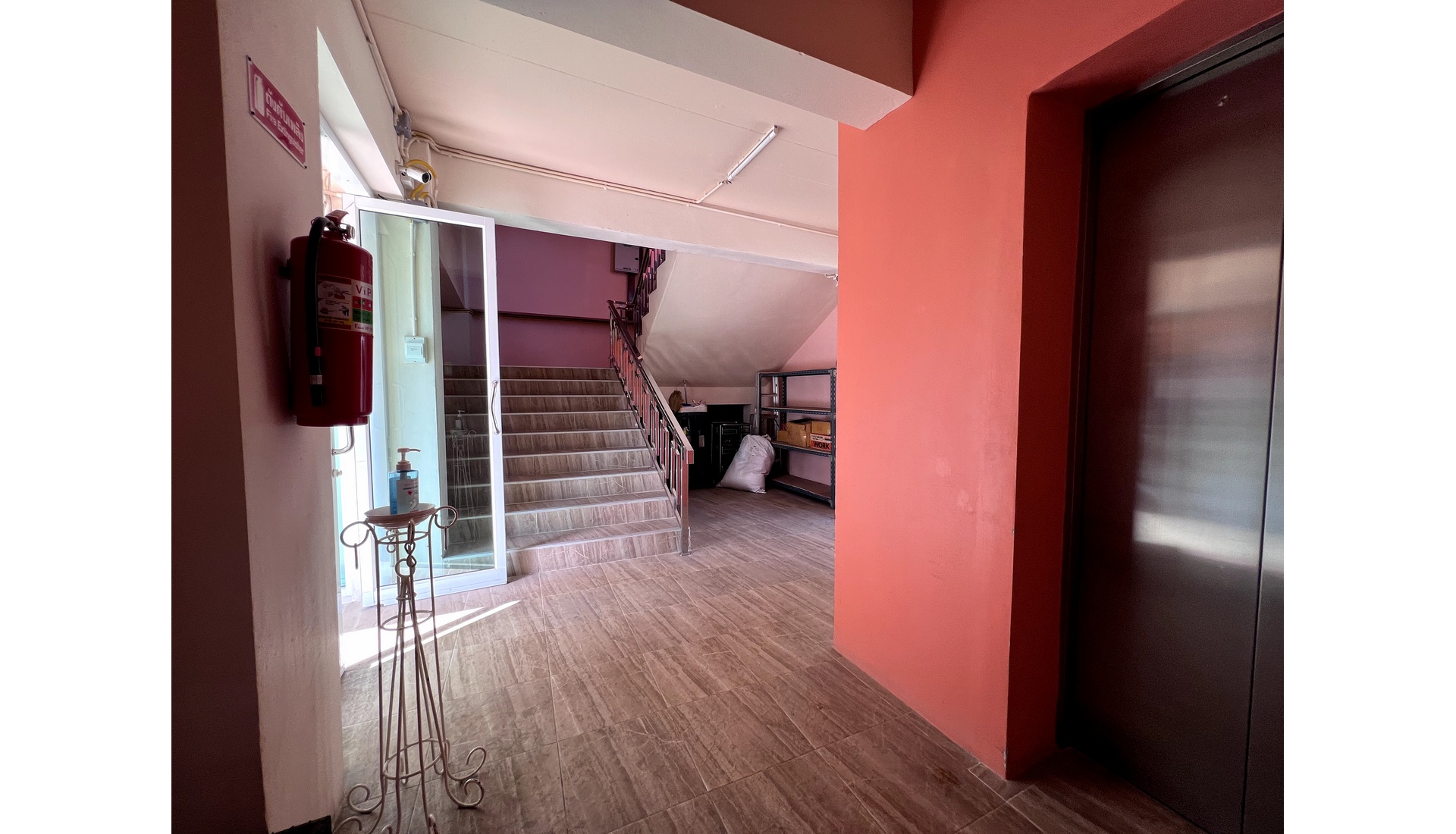 – ขั้นล่างเป็นสำนักงาน ห้องแม่บ้าน พื้นที่สำหรับทำร้านอาหาร บริเวณวางตู้ซักผ้า และร้านซัก-รีด