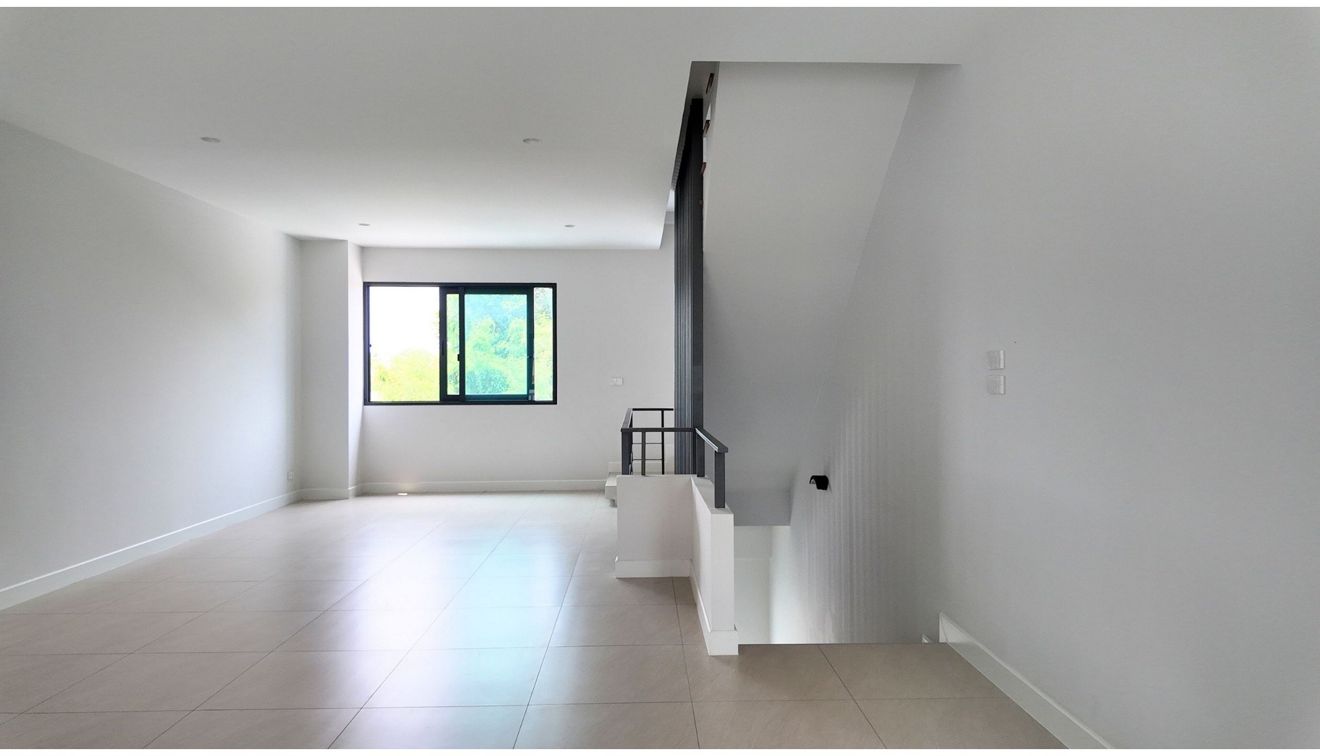 – พื้นชั้น 2 ปูด้วยกระเบื้องอย่างดีสีสรรเข้ากันกับตัวสีภายใน มีหน้าต่างออกไปทางระเบียงด้านหน้า