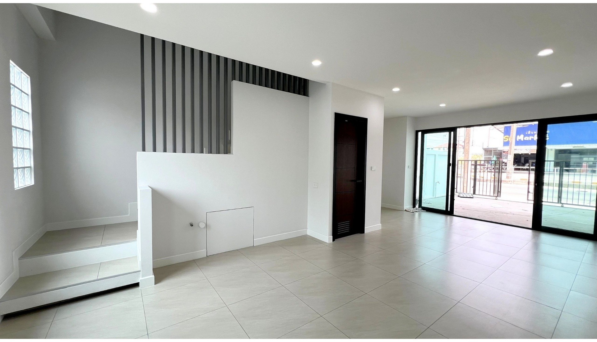 – พื้นชั้นล่าง ปูด้วยกระเบื้องอย่างดี ใช้ประตู Tostem แบบ Airflow Door รับลมและแสงสว่างจากทางด้านหลัง พร้อมห้องน้ำ 1 ห้อง