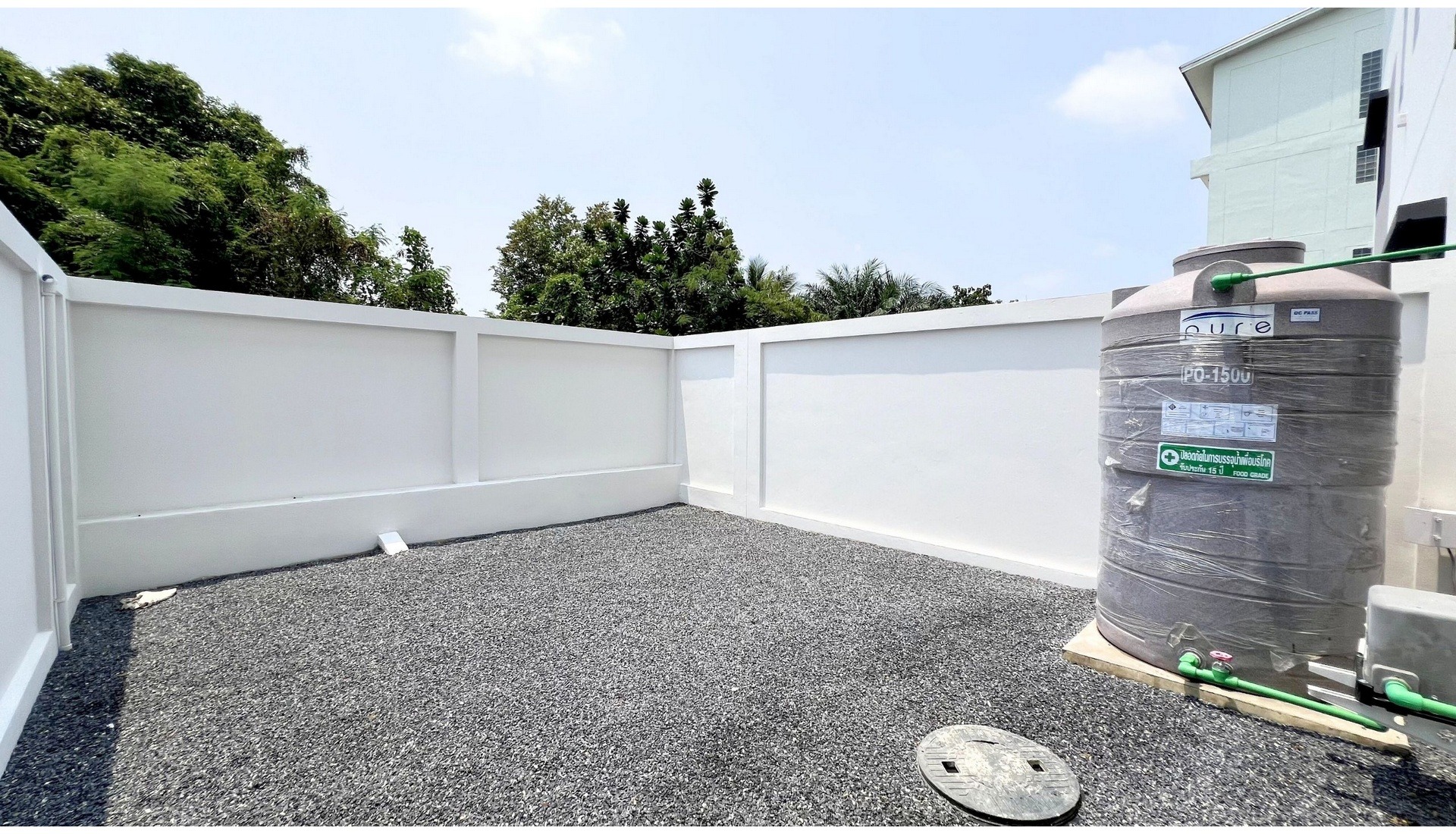 – มีพื้นที่ว่างด้านหลัง ปรับพื้นที่ด้วยดินอัดแน่น พร้อมโรยด้วยกรวด ทำให้ดูแลง่าย