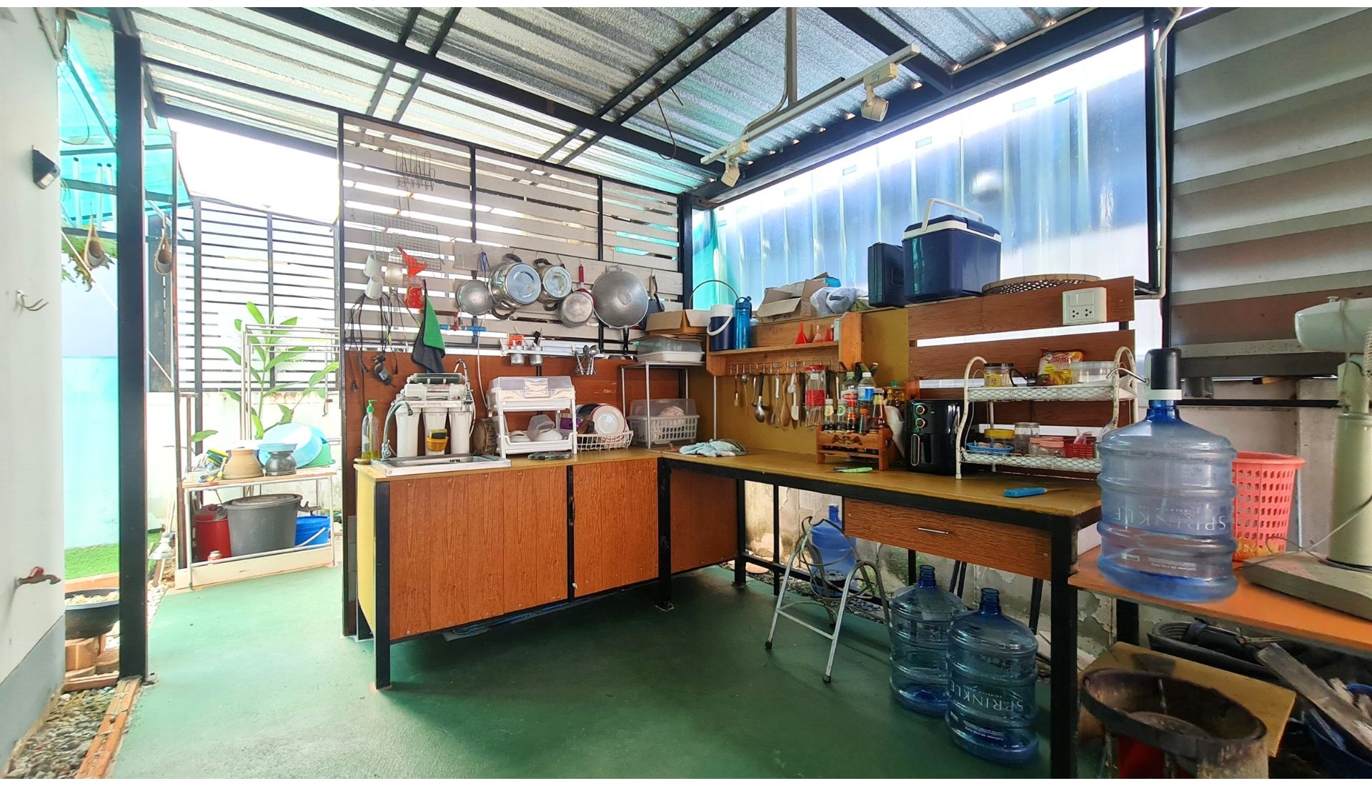 – ด้านหลังต่อเติมครัวมีหลังคาคุลุม