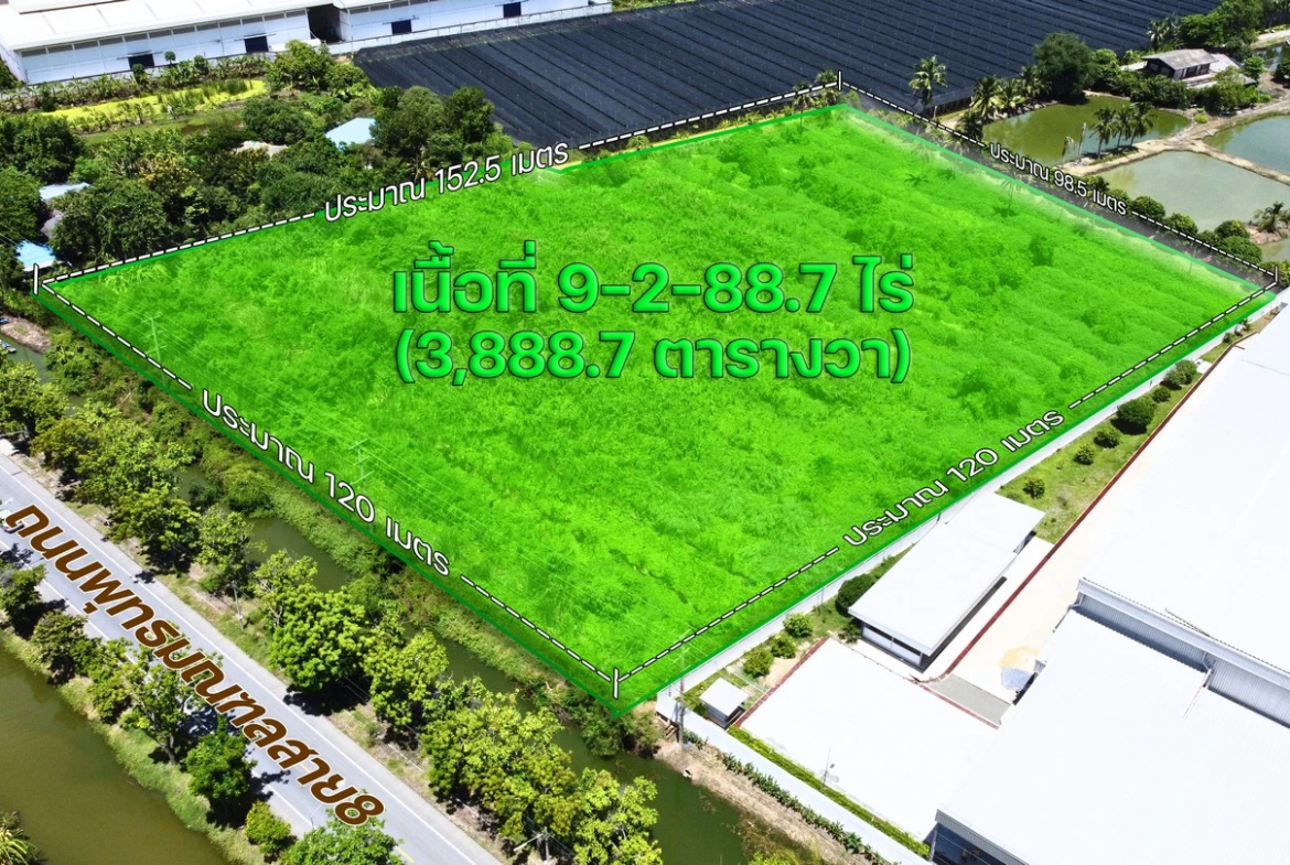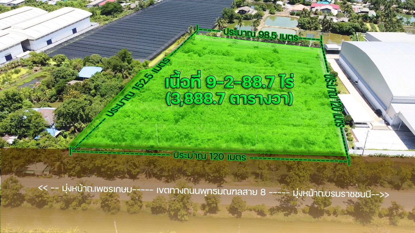 ขาย ที่ดินพุทธมณฑล สาย 8 นครปฐม ตำบลขุนแก้ว นครชัยศรี ติดถนนพุทธมณฑลสาย 8 เนื้อที่ 9-2-88.7 ไร่ พื้นที่สีเขียว เหมาะลงทุนทำโครงการแนวราบ ทำเลดี