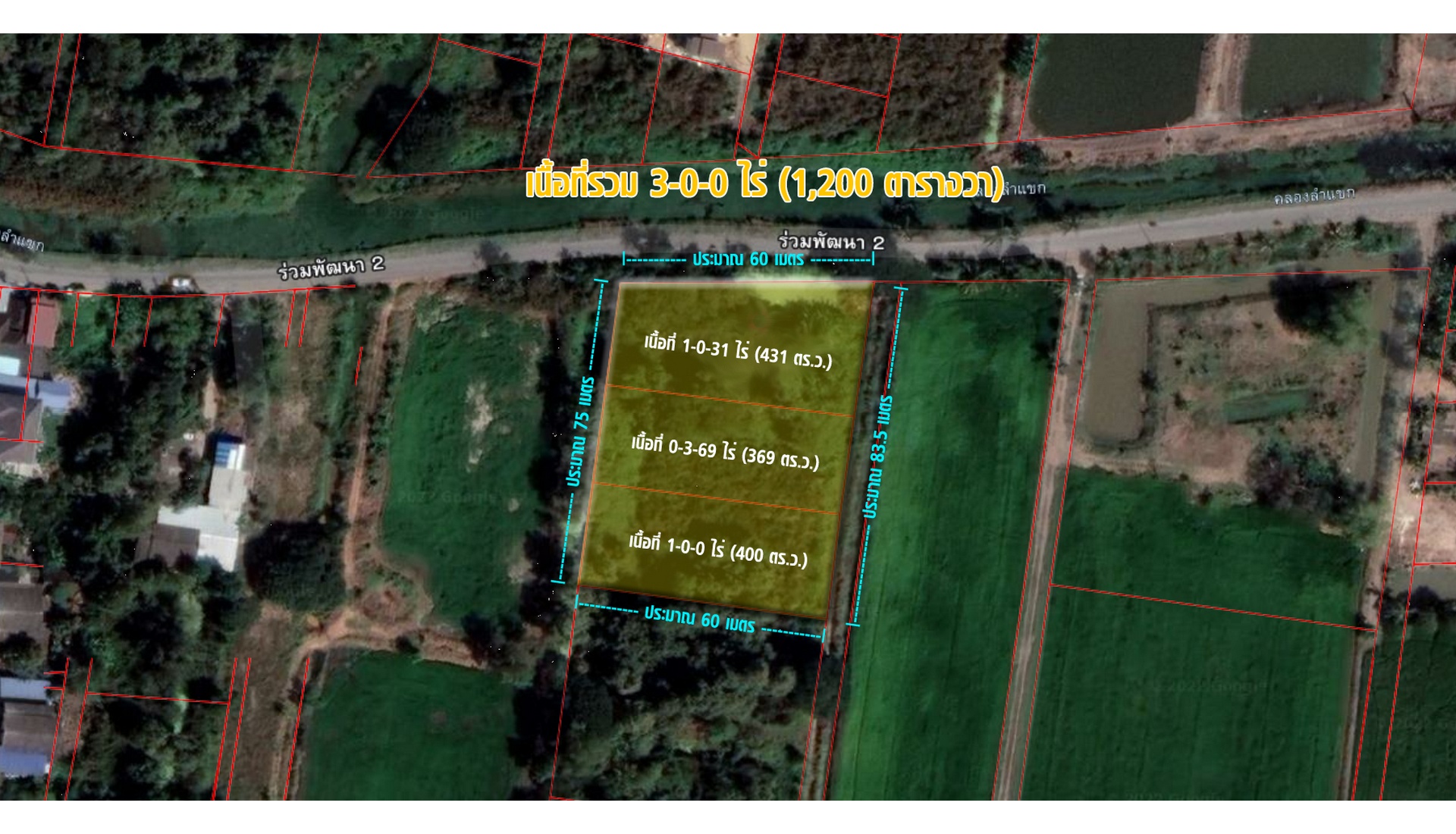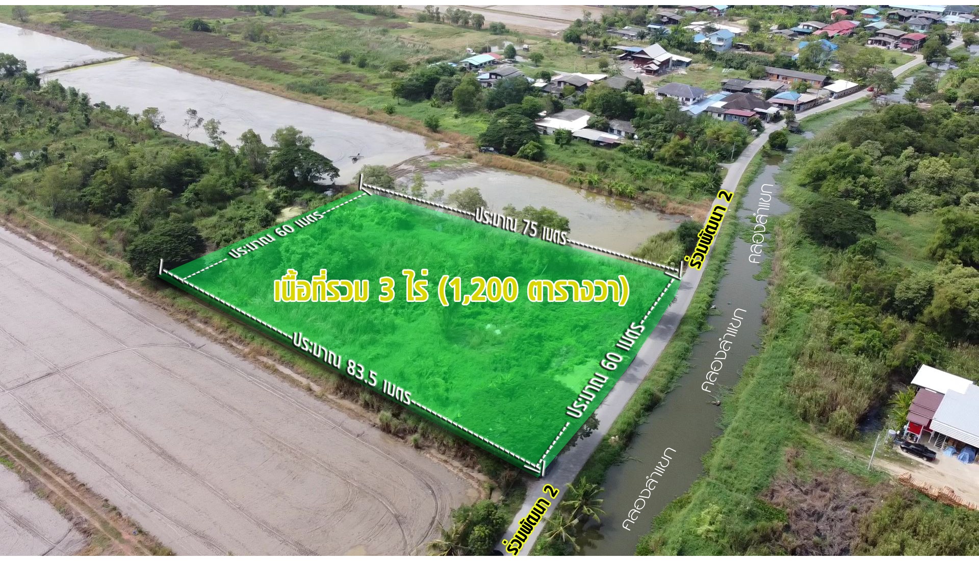 – ที่ดินแปลงสวย เป็นรูปสี่เหลี่ยมผืนผ้า เนื้อที่ 3 ไร่ (1,200 ตารางวา)