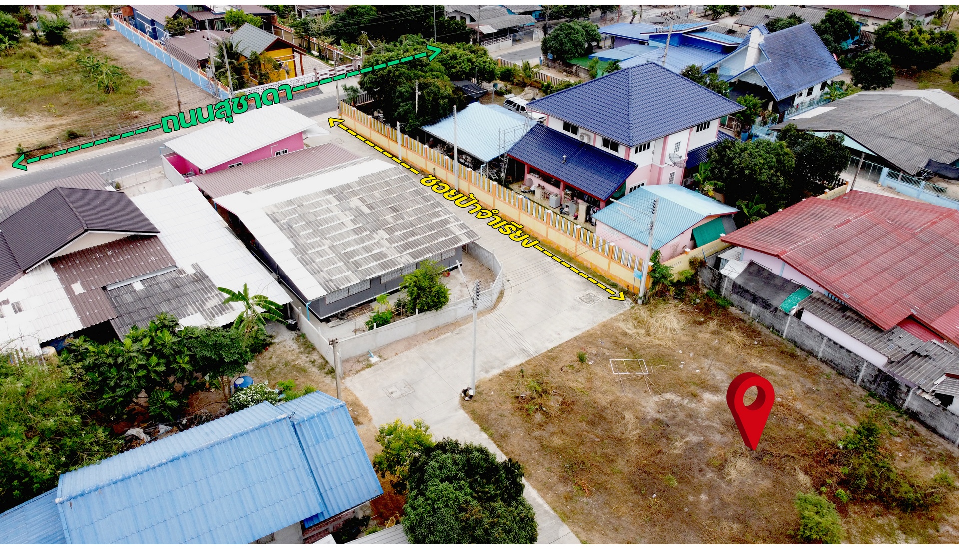 – ด้านหน้าและด้านข้างติดถนนคอนกรีตสภาพดี กว้างประมาณ 4 เมตร