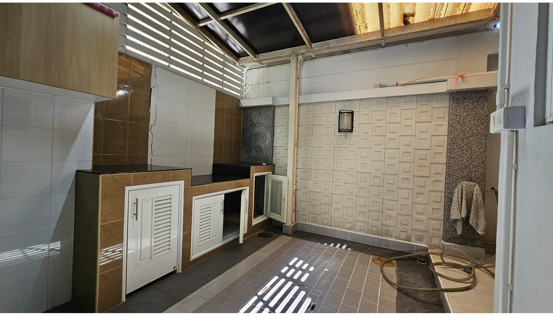 – ด้านหลังต่อเติมหลังคาใช้เป็นครัวและปูกระเบื้องพื้นพร้อมแทงค์น้ำ และปั๊มน้ำ
