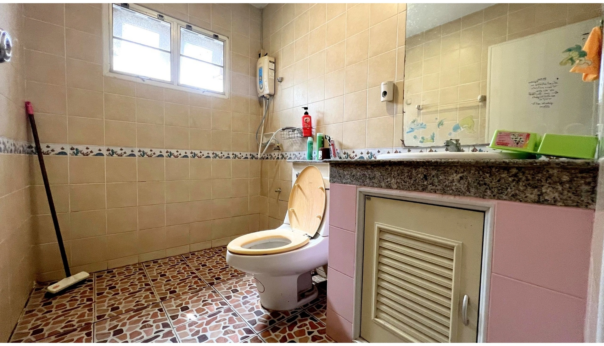- ห้องน้าทุกห้อง พื้นและผนังปูด้วยกระเบื้อง