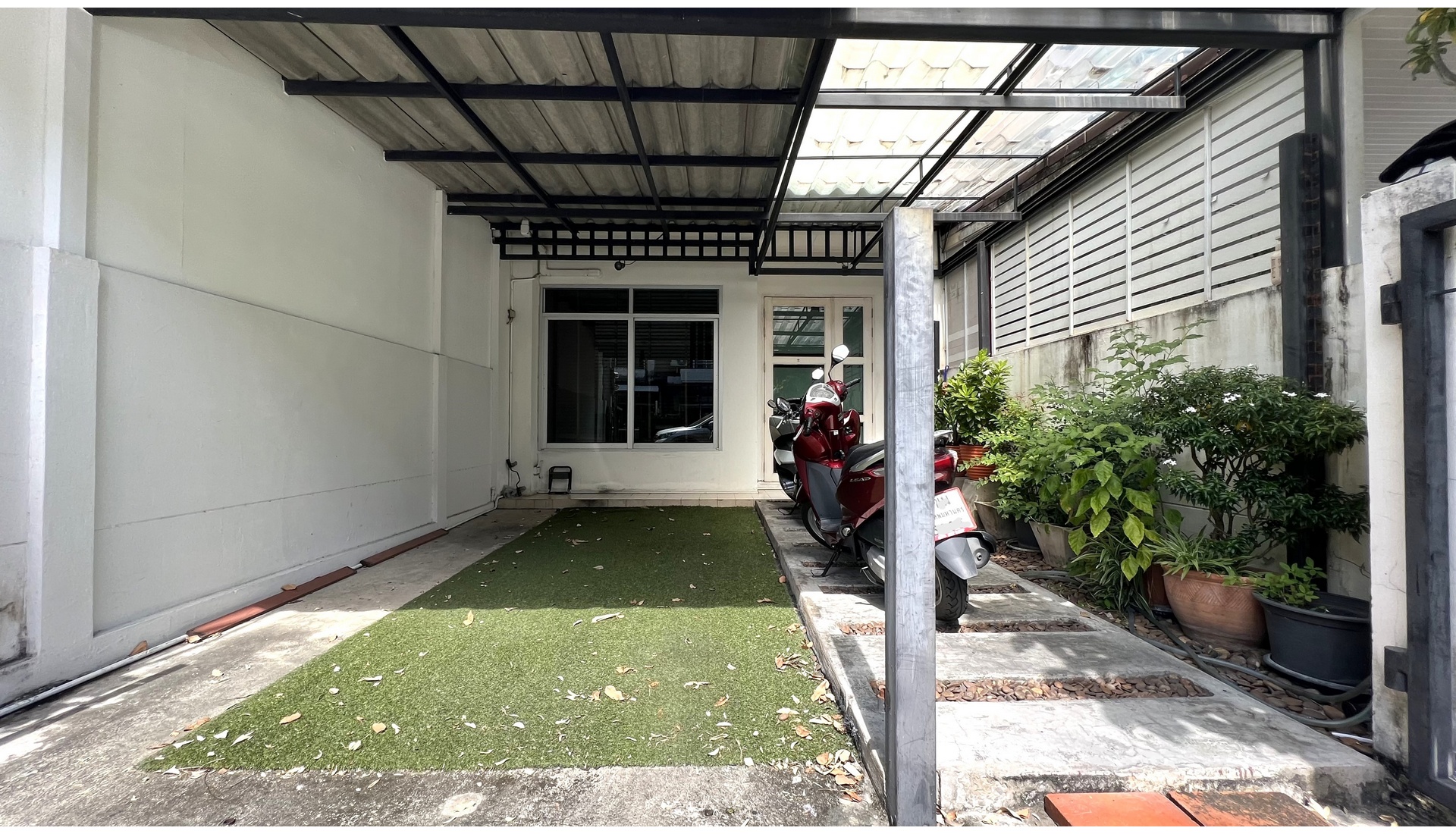 – ต่อเติมหลังคาที่จอดรถด้านหน้า