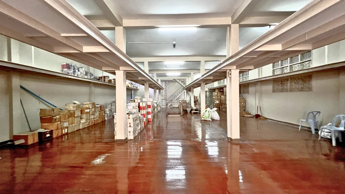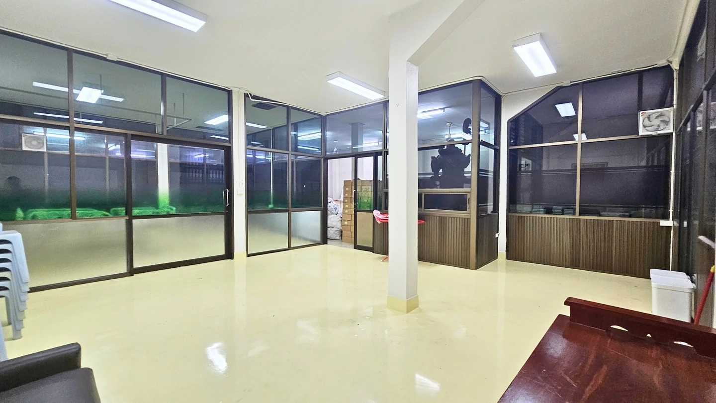 - พื้นชั้นล่างเป็นพื้นหินขัด กั้นห้องบางส่วนเป็นห้องสำนักงาน พื้นที่ส่วนใหญ่ใช้เป็นสถานที่เก็บสินค้า มีห้องน้ำ 2 ห้อง