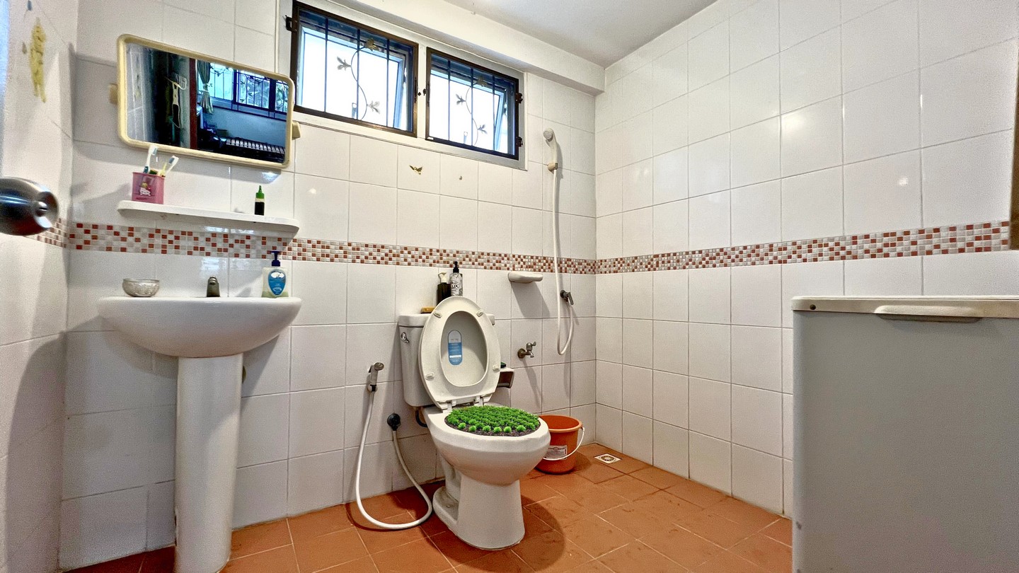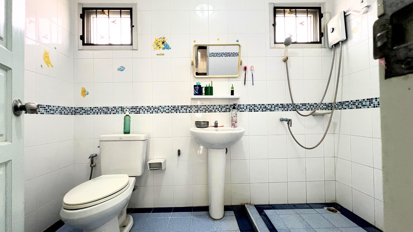 - ห้องน้าทุกห้อง พื้นและผนังปูด้วยกระเบื้อง