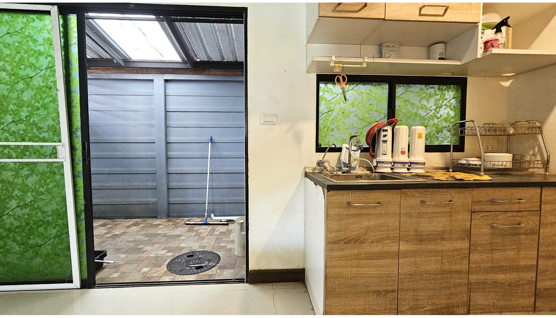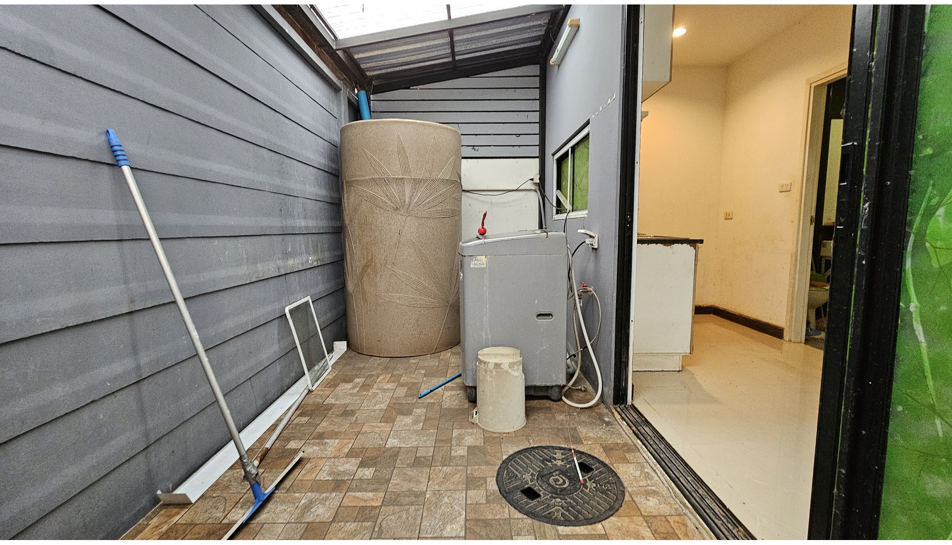 – ด้านหน้าจอดรถได้ 1 คัน พื้นที่ว่างด้านหลังต่อเติมหลังคา พื้นปูด้วยกระเบื้อง พร้อมแทงค์น้ำแบบเอลิเซอร์