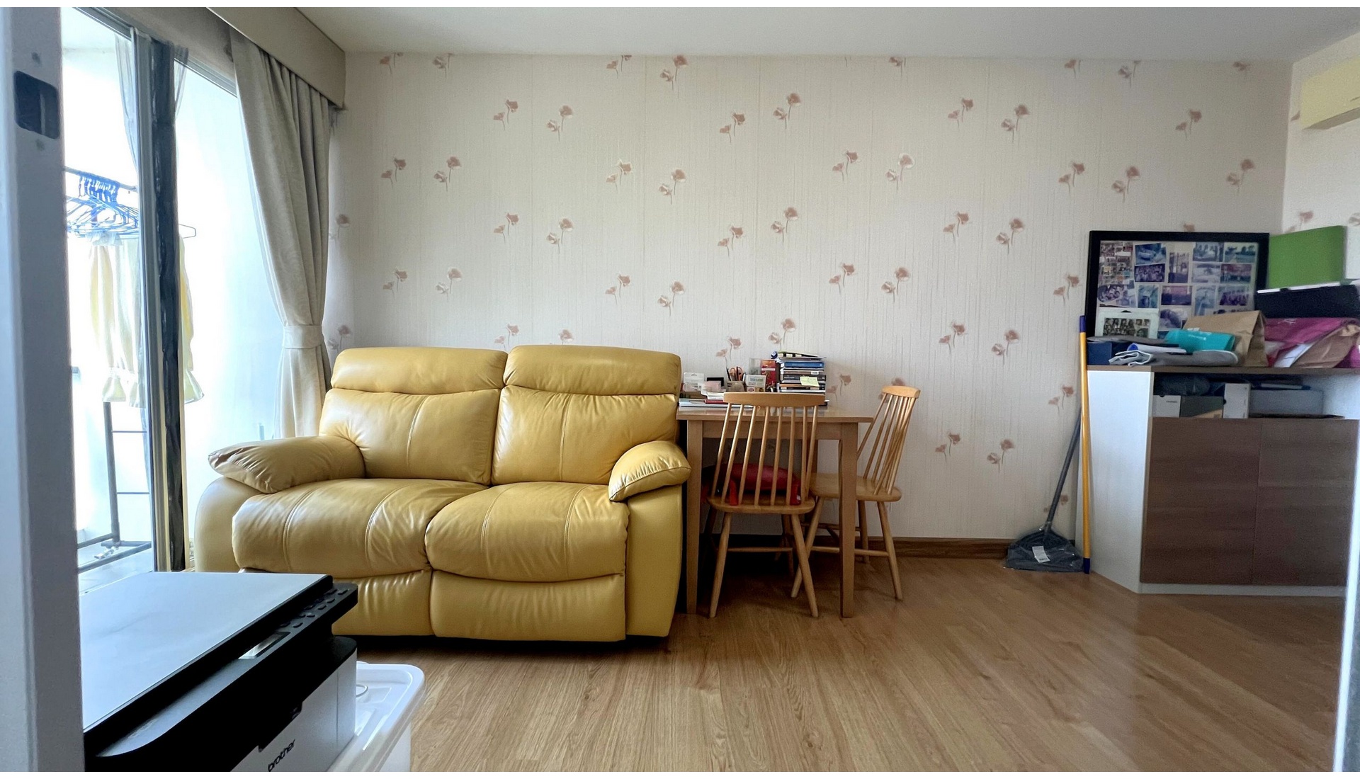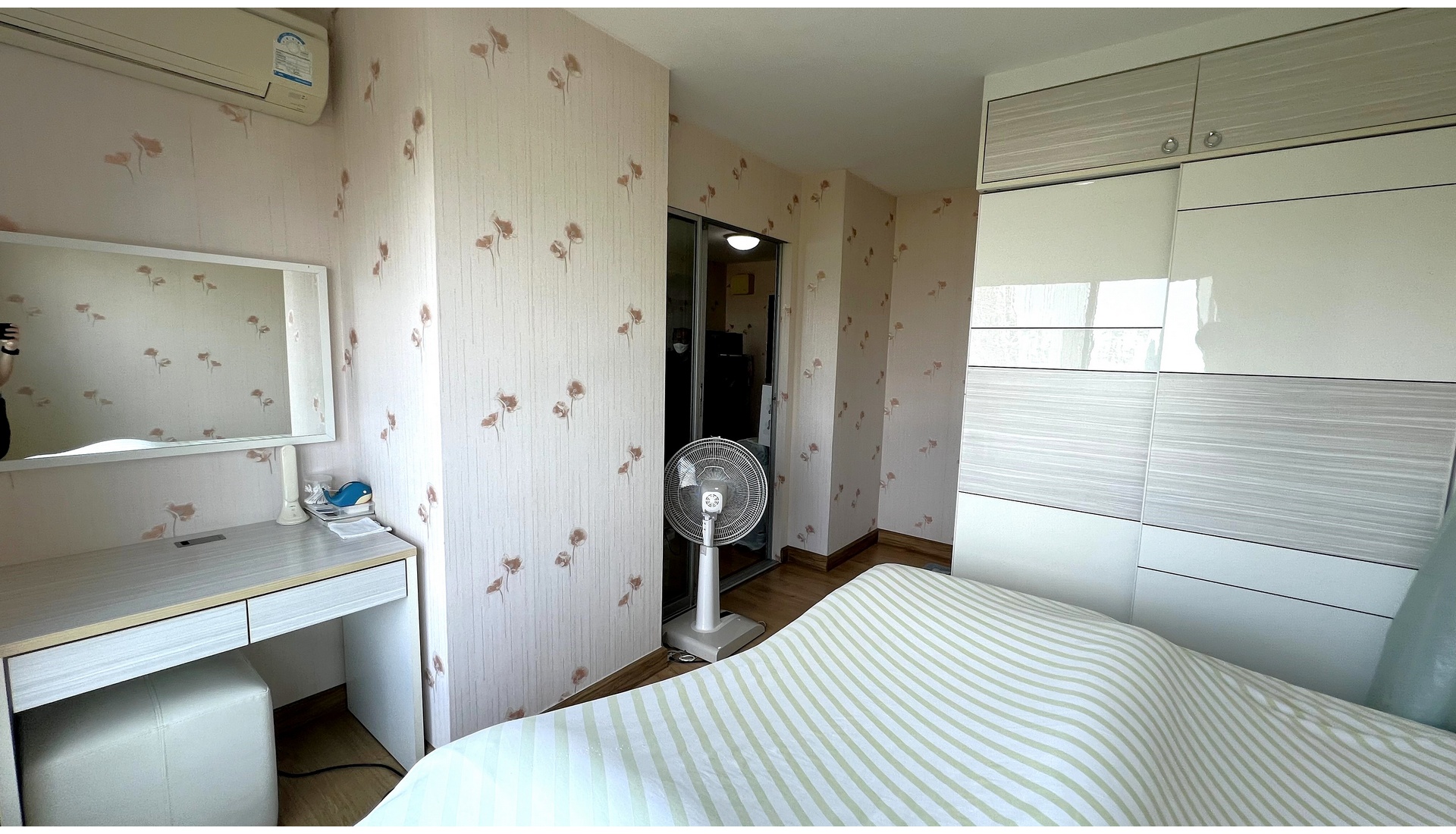 – พื้นภายในห้องเป็นพื้นลามิเนต สภาพดี ผนังปูด้วยวอลล์เปเปอร์ สีโทนอ่อน ห้องจึงดูสว่าง พร้อมผ้าม่านทั้งในห้องนอน และบริเวณนั่งพักผ่อน