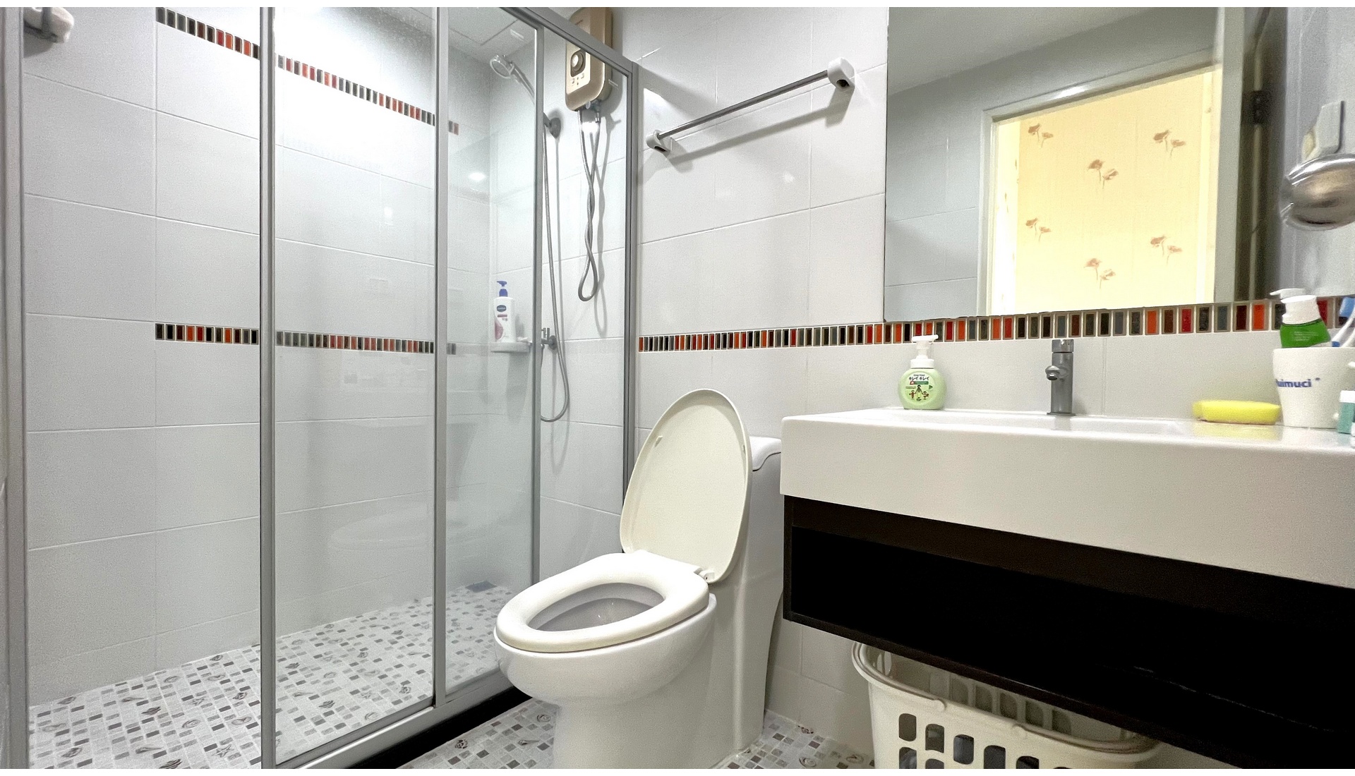 – พื้นและผนังห้องน้ำปูด้วยกระเบื้องเต็มพื้นที่