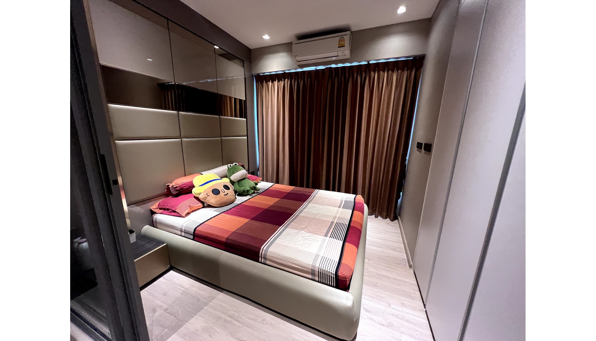 – ห้องนอนมีเตียงพร้อมฟูก พร้อมผ้าม่าน 2 ชั้น ตู้เสื้อผ้า